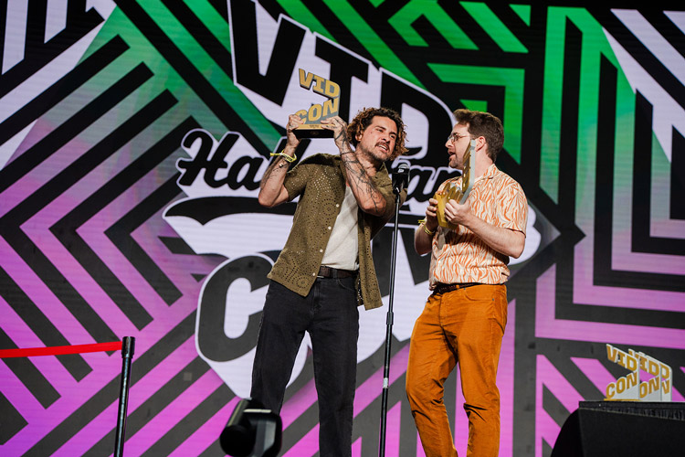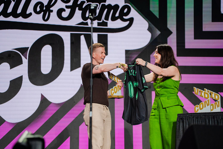 Each honoree received a customized VidCon Hall of Fame jersey, baseball cap, and commemorative award — presented onstage in front of thousands of cheering fans.